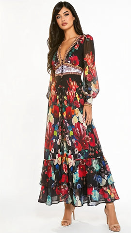 A2946 Bonny Black Floral Flounce Dress