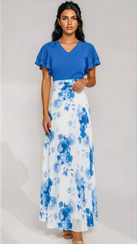 A2914 Beige Multi Tulle Ruffle Maxi Skirt