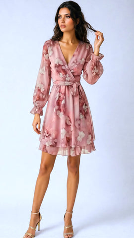 A2836 Nelia Pink Print Flounce Dress
