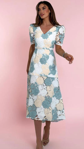 A2971 Rhoda Mint Print Frill Hem Dress