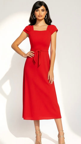 A2899 Melody Red Chiffon Flare Dress