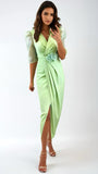 Introducing the exquisite Lilias Dress, crafted with a fabulous and clever tummy covering drape skirt. This midi-length occasion dress exudes sophistication and grace, perfect for any special event. Elevate your style with this luxurious piece.