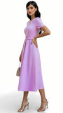 Adorned with a cute cut out detail to the neckline and featuring a boat neckline, this dress boasts an elegant aline shape for a flattering silhouette. Perfect for any special occasion, this dress will make you feel sophisticated and exclusive. And it has pockets!
