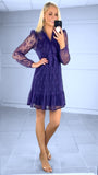 Chic, feminine, and effortlessly flattering – the Vicky Lace Mini Dress is your go-to for any special occasion. Designed in a stunning purple with elegant lace detailing, this mini dress features sheer sleeves, soft ruffle accents along the front,elasticated waist and a tiered hem for a flirty finish.