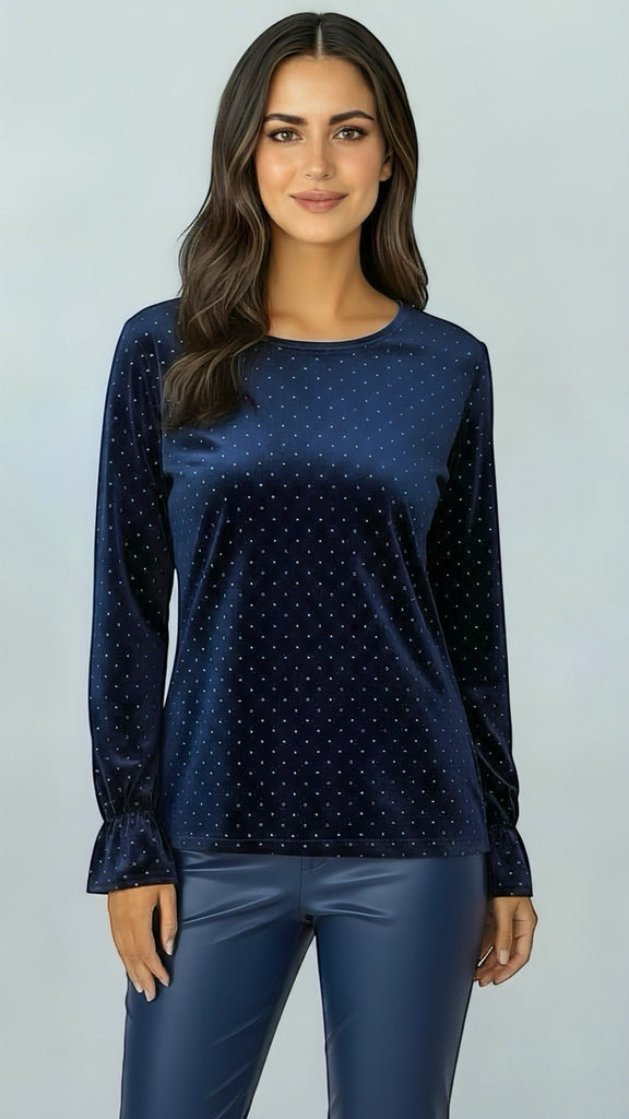 Designed in a lightweight velvet fabric, the Donna diamante embellished top will see you through the party season in style.