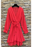 Fab raspberry dress with elasticated waistline & tie belt.