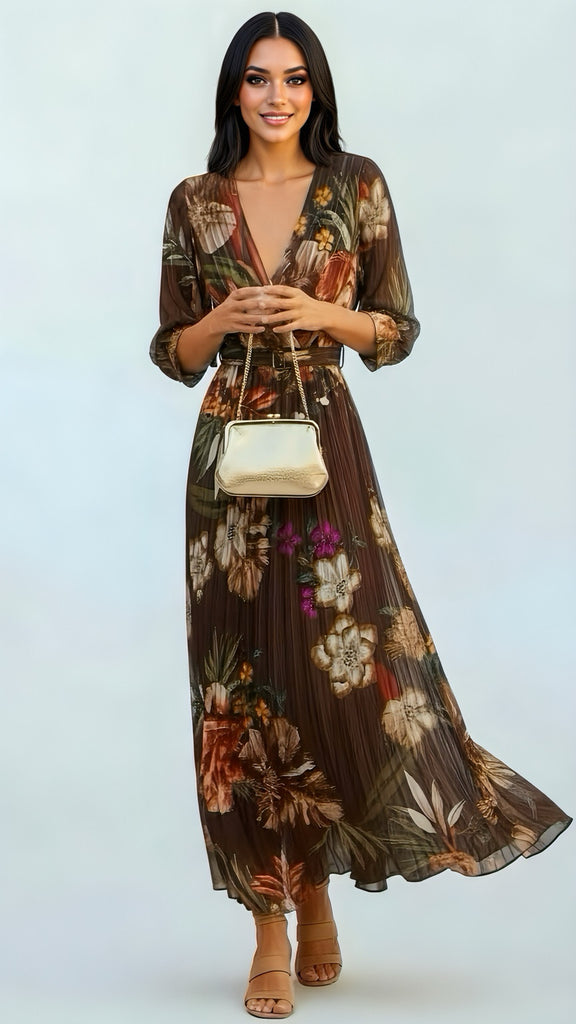 A new season collection Crossover floral dress with gold thread details