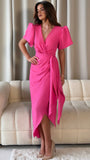 Enhance your confidence and curves with the Drew Wrap look Dress. Featuring padded shoulders for a statement silhouette and a flattering wrap front skirt, this dress will make you feel and look your best. Perfect for any occasion, the puff sleeves add a touch of fun to this must-have dress! Pair with heels and a matching purse.