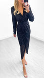 This gorgeous sequin midi dress brings the glitz and glamour to your wardrobe. Wear with heels and simple accessories for an occasion look!