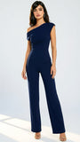 Experience modern elegance with the Donna Asymmetric Neckline Jumpsuit - a classic, timeless piece crafted from the highest quality materials for a luxurious feel. Its unique asymmetric neckline provides visual interest, while the sleek Wide leg trouser flatters the figure and elongates your legs, creating an exquisite look that will never go out of style.