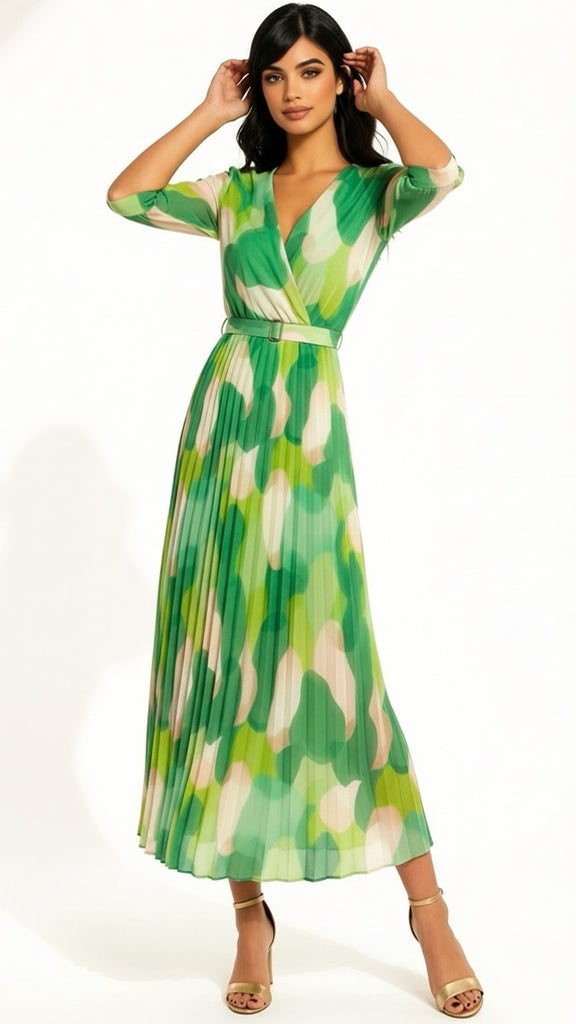 Crossover tonal print dress with elasticated waist,