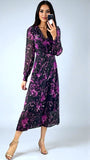 Featuring a romantic purple lily print on a black base, elegant lace trim detail and a stretch to make it super comfortable. This dress is lined and is sure to be a hit!