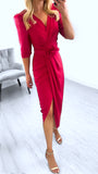 Introducing the exquisite Lilias Dress, crafted with a fabulous and clever tummy covering drape skirt. This midi-length occasion dress exudes sophistication and grace, perfect for any special event. Elevate your style with this luxurious piece.
