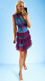 4-A2217 Blue/Red Malva Flounce Mini Dress