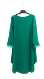 Introducing the exquisite Evalo trouser set, crafted with a fabulous feather trim to the sleeves and a floaty dip hem top. This trouser set exudes sophistication and grace, perfect for any special event. Elevate your style with this luxurious piece.