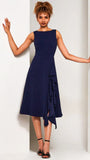 - The dress is complimented by a frill hem detail that cascades gracefully, adding movement to every step you take. Completed with a round neckline, sleeveless design and 2 side pockets.