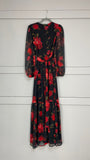 Have heads turning all season long in this classic Hope & Ivy wrap dress – new in for AW25. The Camilla is set to be a seasonal favourite, with bright red, hand-stylised blooms decorating a stylish, chiffon base. Thanks to its flowing maxi skirt and figure-enhancing waist tie, she cuts a beautiful silhouette, with full length blouson sleeves offering endless style to this modest occasion dress. Whether you’re headed out for an evening event or need a dress for a winter wedding, The Camilla is a beautiful choice.