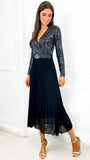 This sparkly long sleeve v-neck bodysuit is perfect for pairing with coated jeans and heels this party season.