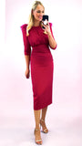 Introducing the exquisite Severina Dress, crafted with fabulous feather trim shoulders and clever rouching tummy panel which is so flattering. This midi-length occasion dress exudes sophistication and grace, perfect for any special event. Elevate your style with this luxurious piece.